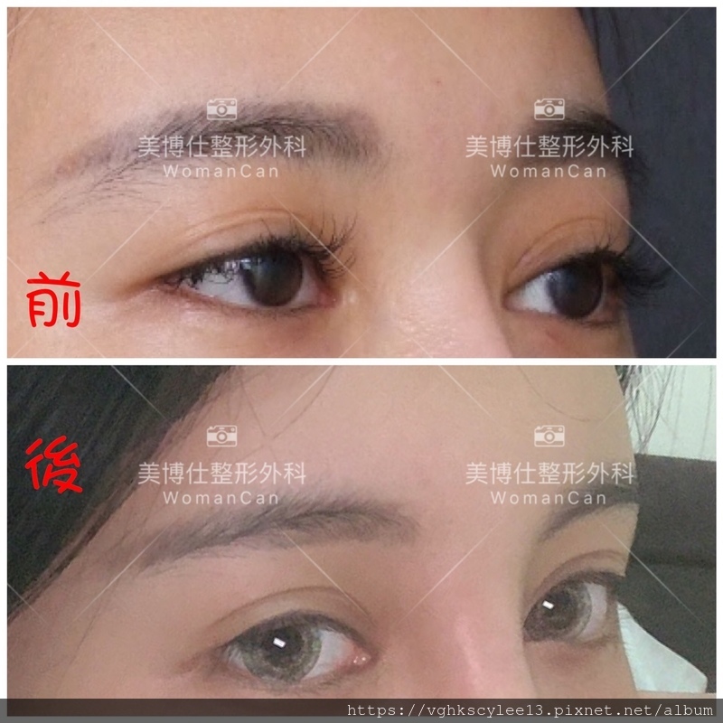 (下圖)左:做眼皮取油依然泡泡眼無神,右:提升飽滿輪廓改善拋眼和高低眉