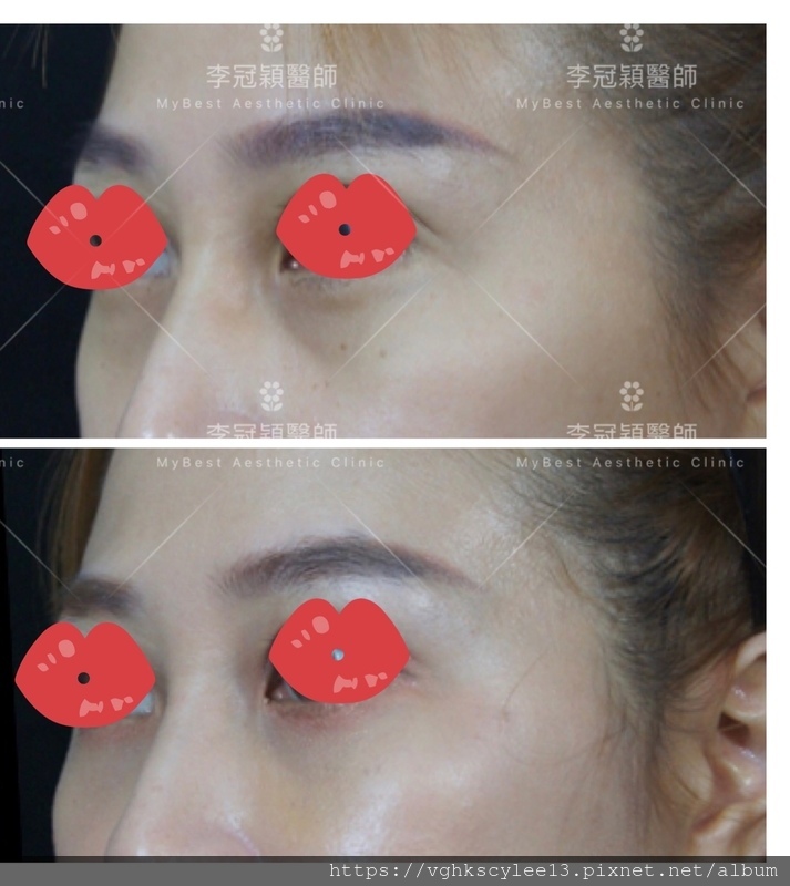 2. 近視或先天眼凸型:因為眼凸造成韌帶效應明顯‘出現凹溝“,也往往出現假性早期眼袋而被割眼袋,日後提早眼凹陷的副作用,接著開始無窮盡的注射填充及修補…