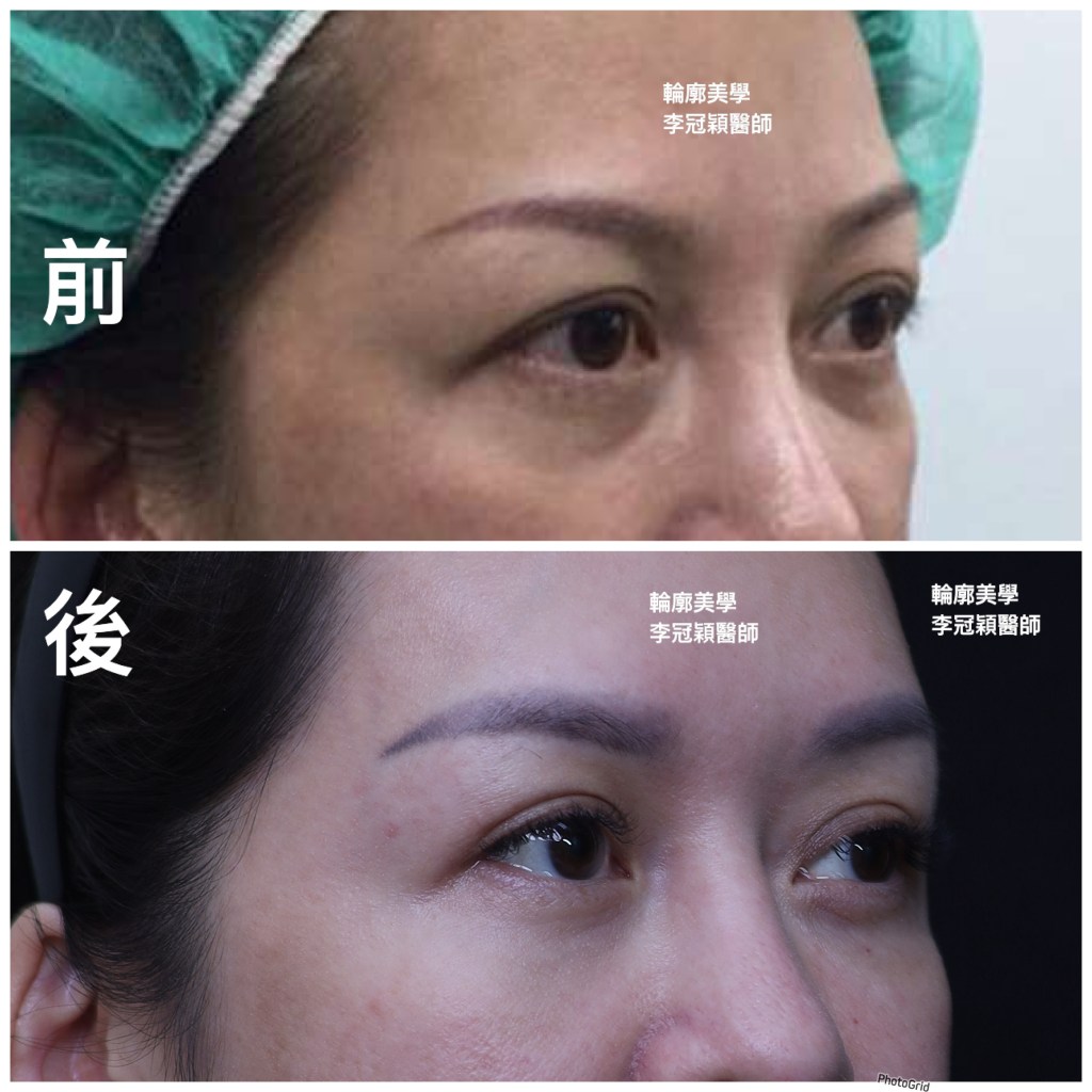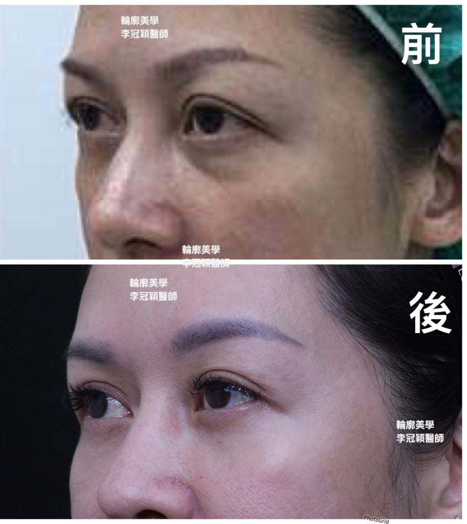 經李醫師診斷年輕型眼凸淚溝,以淚溝貓咪紋墊片改善,也提升支撐法令紋,改善不合理填充。