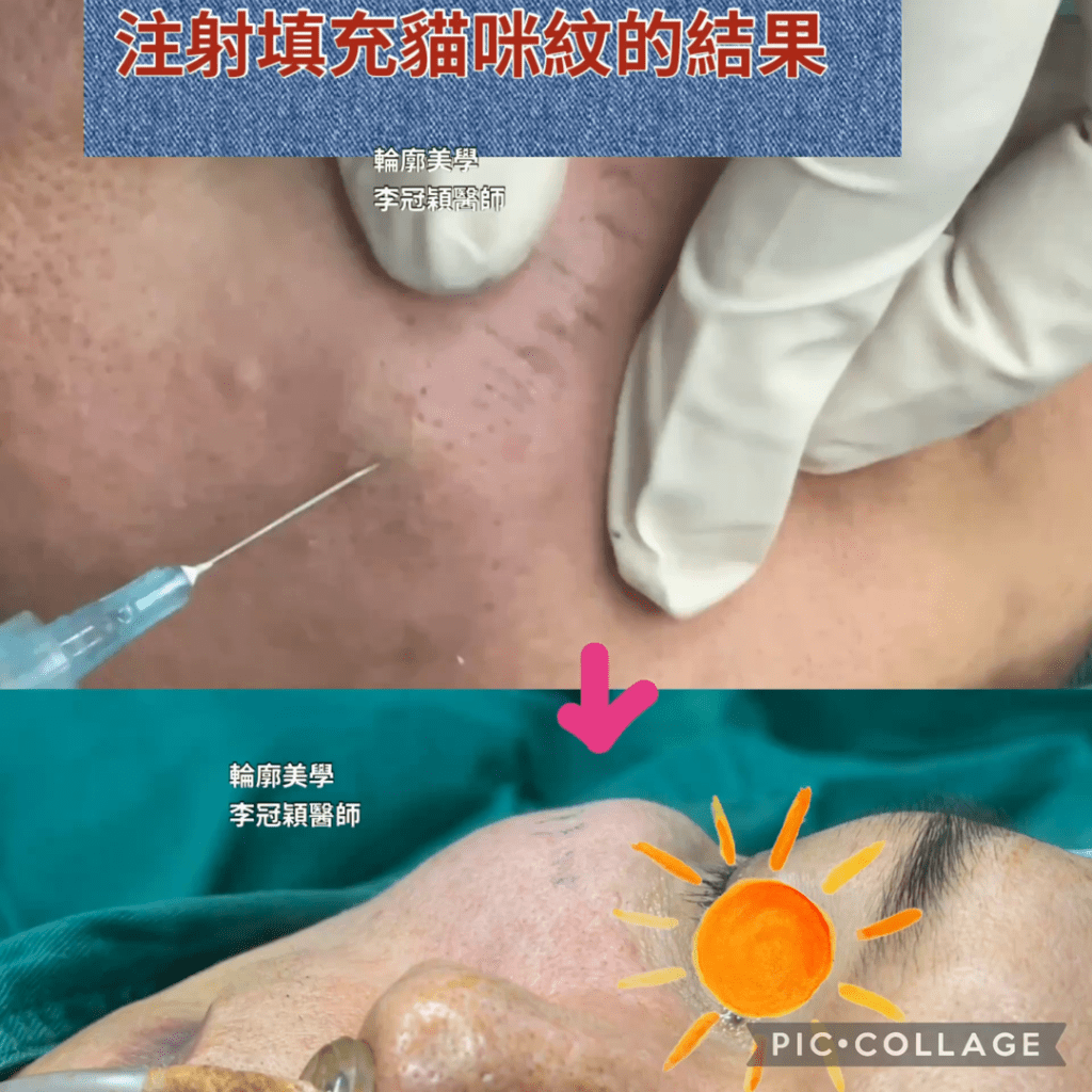 下圖:總共打過兩三次淚溝貓咪紋不同材料(白色膠原刺激劑和玻尿酸),貓咪紋填充劑取不到因為破壞太大。