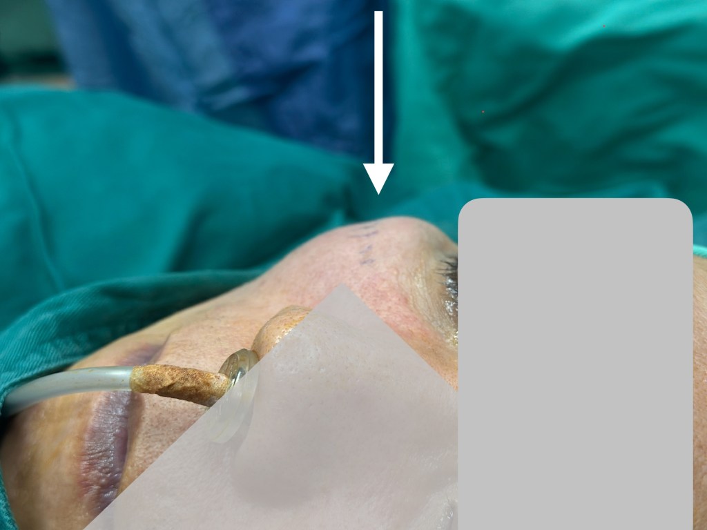 自體脂肪(上圖)和玻尿酸(下圖)注射淚溝和貓咪紋副作用:不規則凹凸顆粒感,取出過程。因為眼周淚溝是動態區,注射的脂肪或是玻尿酸等填充方式都會因為表情頻繁造成移位結塊的。隨時間終會造成凹凸。只有手術取出才能改善。