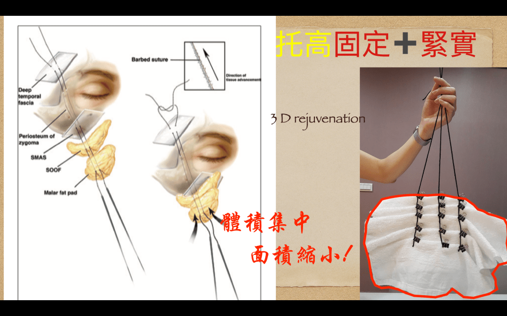 李醫師針對這話術來說明:提到筋膜感覺很厲害很新的無創手術,其實埋線的針對點在淺組織(移動性最大的層次),而筋膜卻是移動較小的層次除非剝離手術。