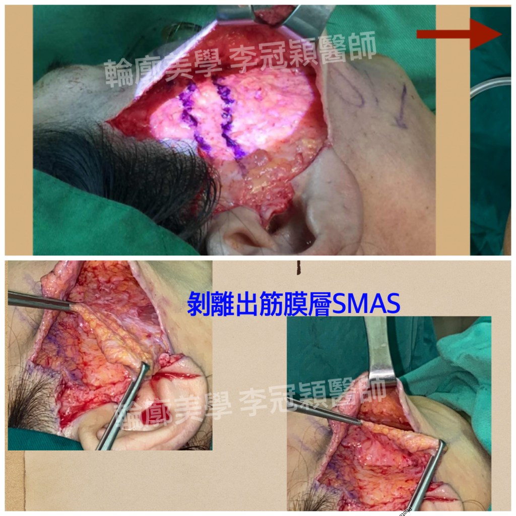 SMAS筋膜層(下圖)需要剝離韌帶才能獨立出來,單獨疊瓦或提升在此時才有辦法執行,因此求美者了解 之後就能更清楚什麼是包裝話術。