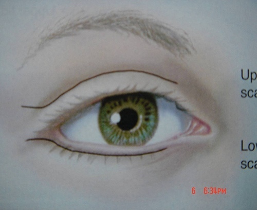 範例:三合一眼袋手術:脂肪下移填溝,修皮,保留臥蠶,下眼拉皮。