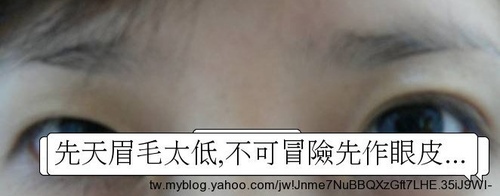 下圖:先天眉壓眼直接做眼皮常有的錯誤手術:應該先提眉再決定做眼皮!
