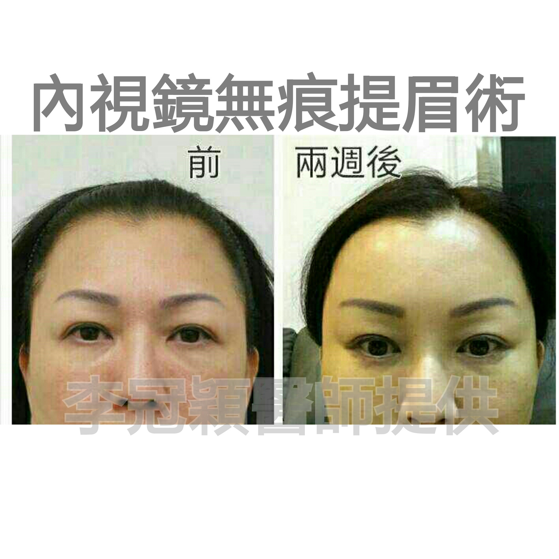 下圖範例:(52歲女性)無痕內視鏡提眉改善眉壓眼皮