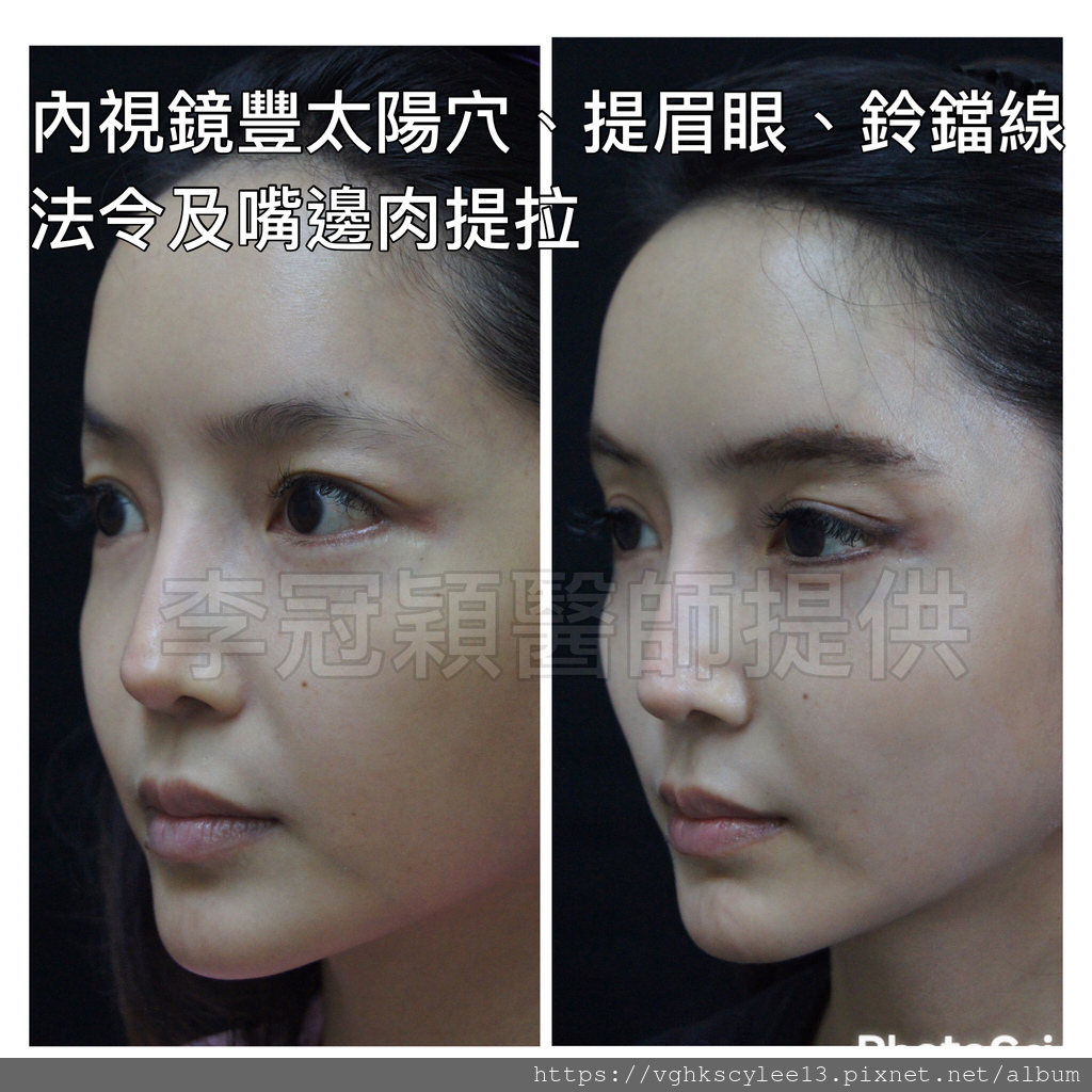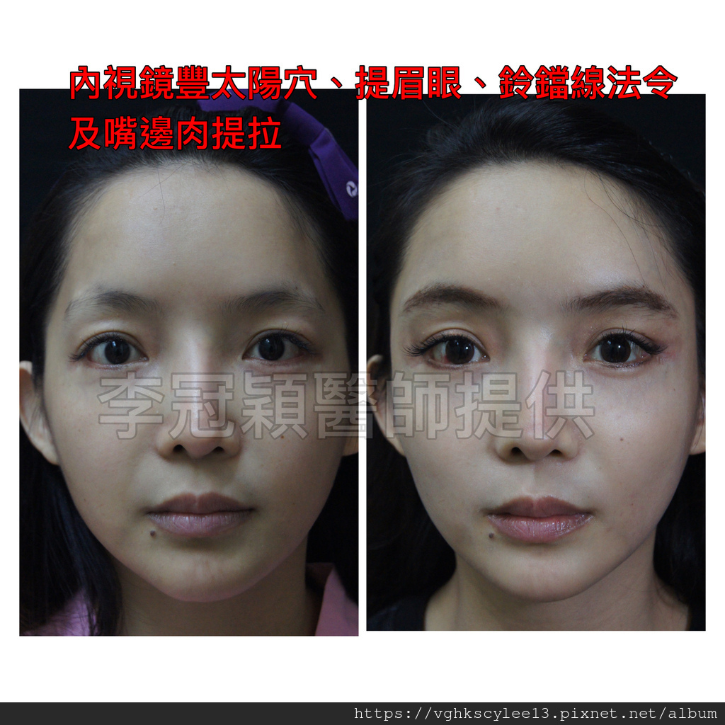 範例下:內視鏡提眉手術和太陽穴整形,臉上無傷疤的隱痕手術。