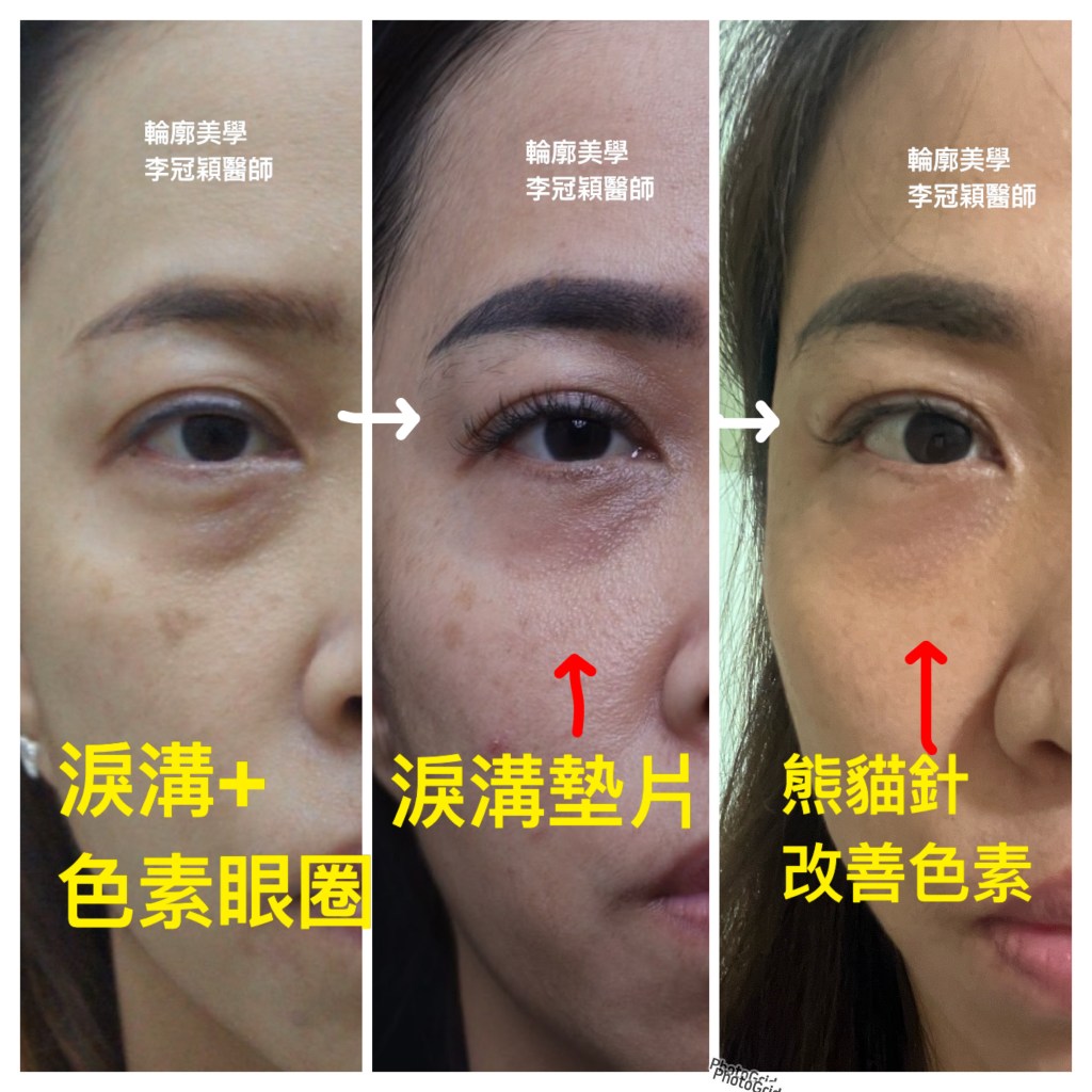 下圖:年輕型眼袋型淚溝,以內開淚溝墊片治療