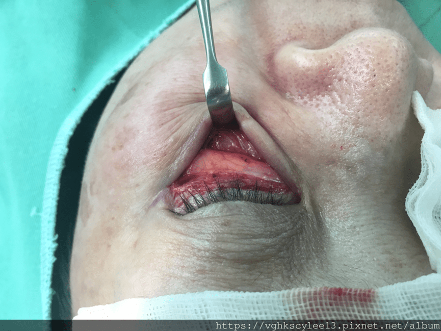 下圖:內開眼袋實際過程(結膜內入口)