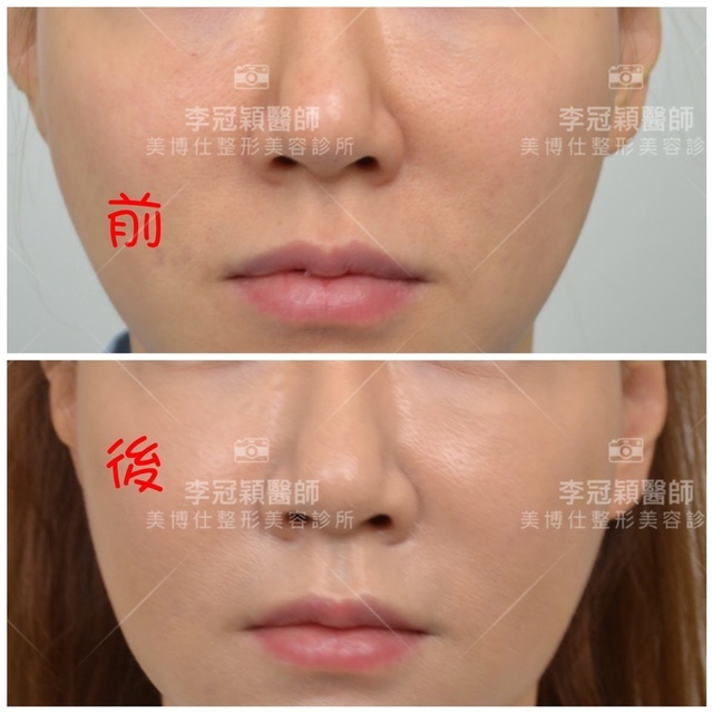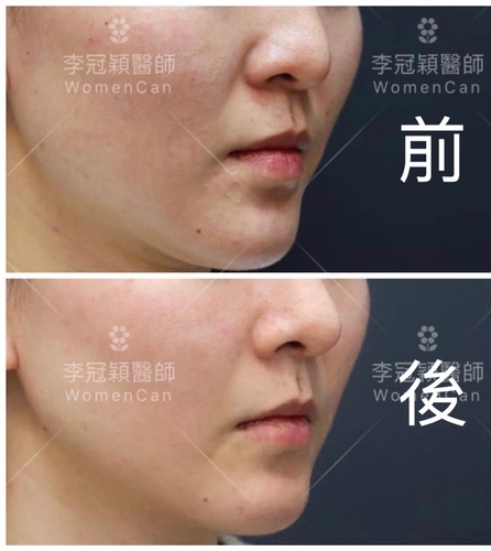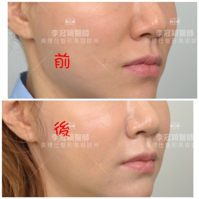 案例下圖:鼻基底凹缺或是輕度嘴凸,屬於骨性凹缺並非法令紋,必須針對骨架調整的墊片改善.👍👍👍