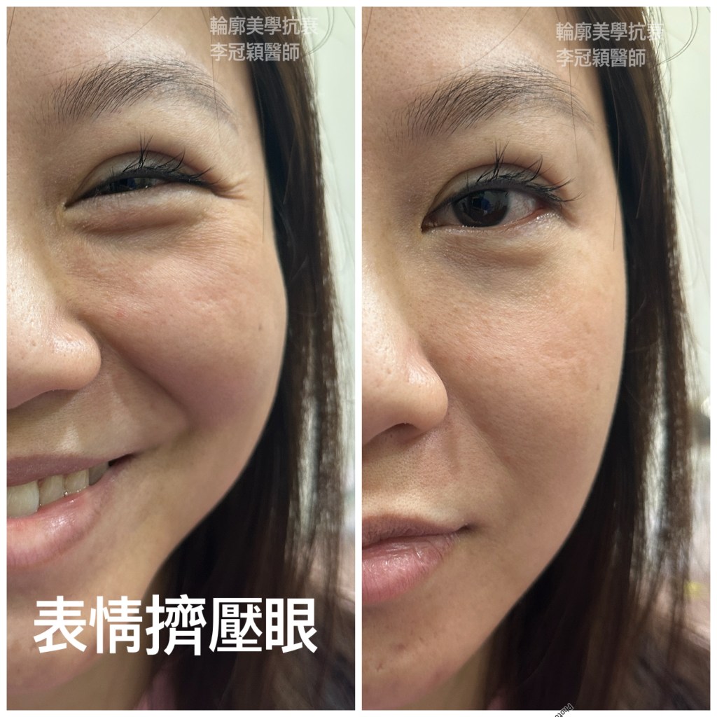 下圖:無論先天骨架不足或骨架流失難以支撐組織而臉頰進一步下垂 摺出法令深溝。接受中臉骨架墊片同時改善法令紋與淚溝.