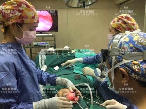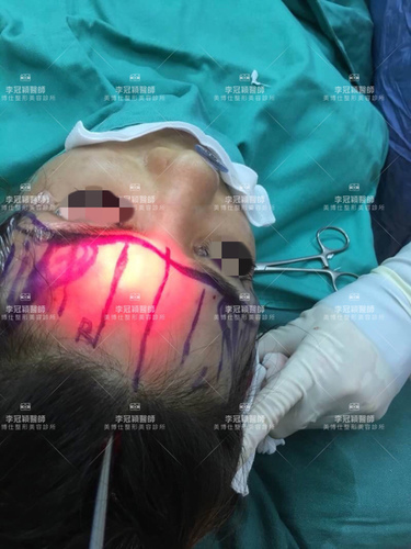 透過內視鏡微創設備,李醫師可以執行提眉術 /墊額頭 /墊眉骨/太陽穴整形