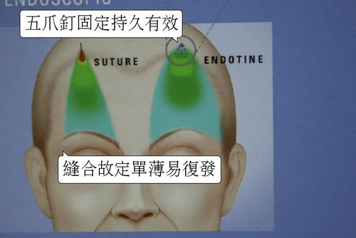 傳統前額拉皮手術因疤痕大,過度期長, 傷口問題多, 固定方式較弱. 等缺點